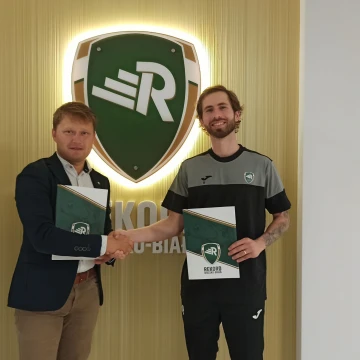 Do kadry futsalowych wicemistrzów Polski dołączył Gustavo Henrique Steinwandter, na zdjęciu z wiceprezesem Rekord SSA – Piotrem Szymurą.