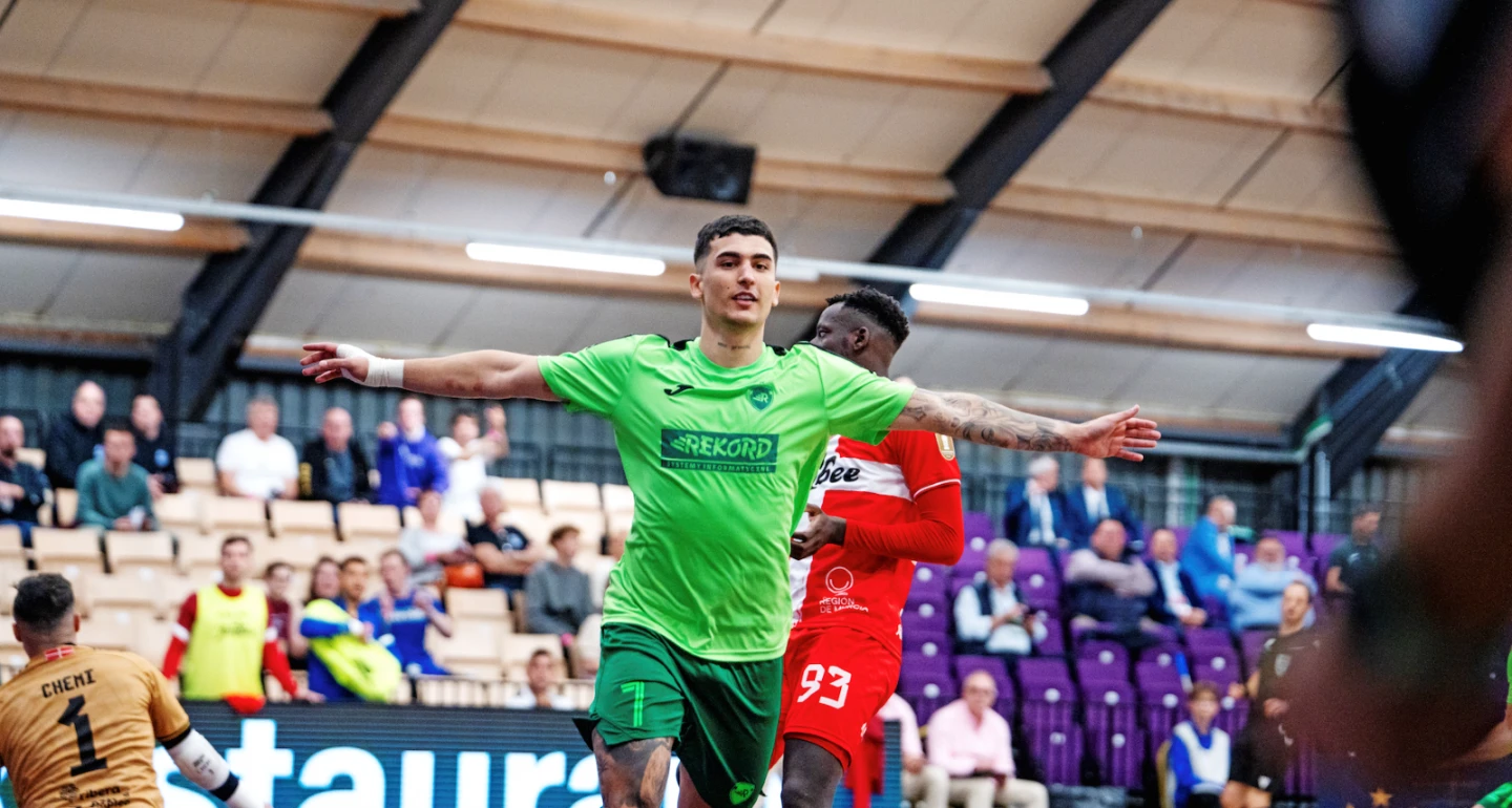 20 minut pierwszej odsłony w wydaniu mistrzów Polski to apoteoza ciężkiej, futsalowej pracy na całej przestrzeni boiska. Nawet, gdy zdarzały się fragmenty przewagi zespołu z Cartageny – a tych było na dystansie całej połowy co najmniej kilka – absolutnie nie było mowy o dominacji. Oczywiście, że parę kluczowych interwencji zanotował imponujący spokojem w bramce Bartłomiej Nawrat. W działaniach obronnych każdy z bielszczan emanował zaangażowaniem, determinacją i ofiarnością. Ale „rekordziści” nie ograniczali się wyłącznie do pracy w defensywie. Mieli biało-zieloni przynajmniej trzy dogodne okazje do objęcia prowadzenia. W 21. minucie po podaniu Matheusa (na zdjęciu) nieznacznie pomylił się Eric Panes. Chwilę później Dela sprawił, że strzegący bramki rywali Chemi musiał wspiąć się na wyżyny umiejętności. Po kontrze (17. min.) duetu: Stefan Rakić – Mikołaj Zastawnik, chybił w doskonałej sytuacji reprezentant Polski.