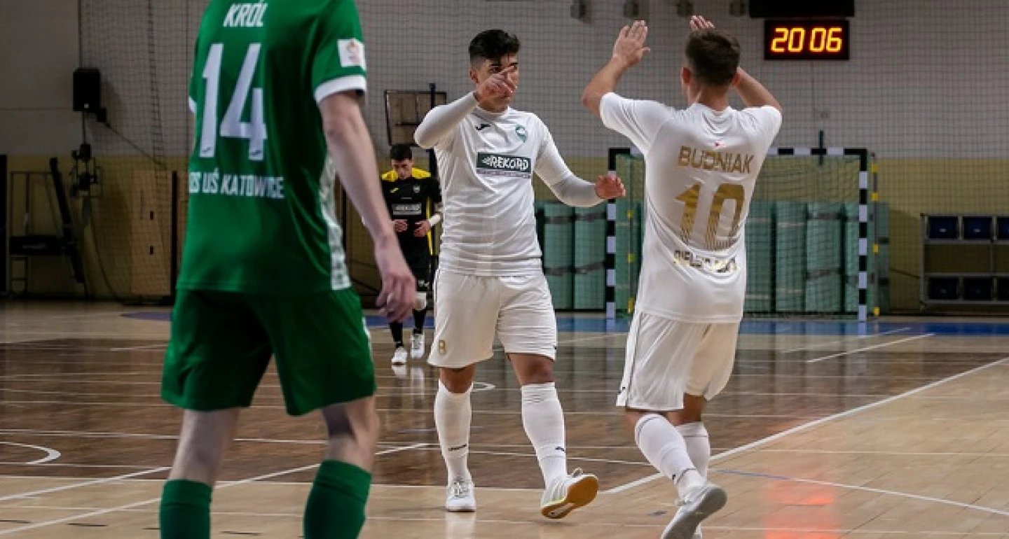 Wystarczyło podkręcić tempo gry, podeprzeć szybkie rozgrywanie piłki dokładnością i obrona brzeżan szybko została złamana. W niespełna sześć minut „rekordziści” odrobili straty z nawiązką, w czym spora zasługa Matheusa i P. Budniaka (obaj na zdjęciu). Kolejne dwie bramkowe okazje wykorzystał Stefan Rakić, finalizując wyborne asysty Kamila Surmiaka i Artura Popławskiego. Pobudzeni prowadzeniem po pierwszej połowie gospodarze wyraźnie spuścili z tonu w drugiej odsłonie. Przeciwnie bielszczanie, demonstrując futsal na bardzo przyzwoitym poziomie w tej fazie meczu wywieźli z Opolszczyzny dwubramkową zaliczkę.