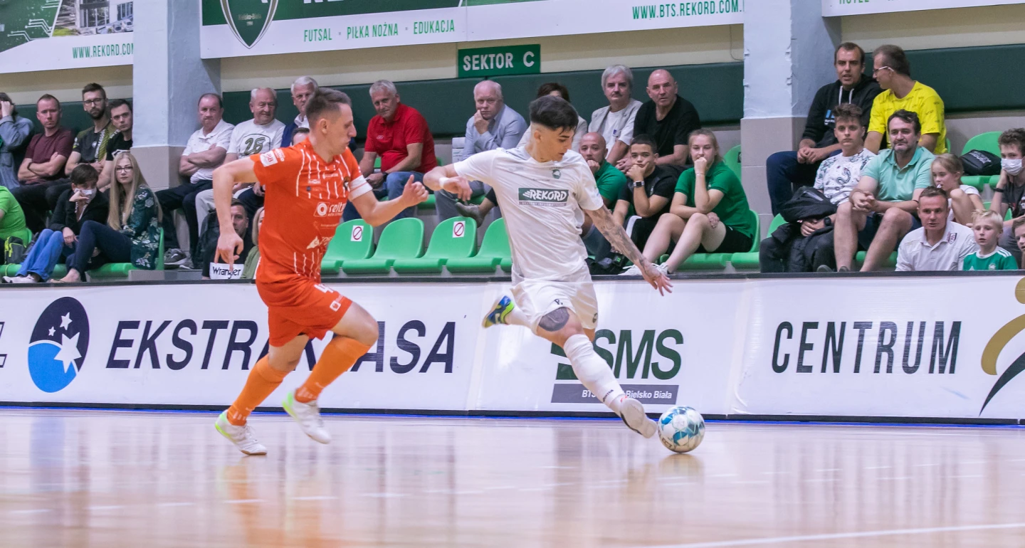 Skoro o zespole z Małopolski, w minioną sobotę bardzo korzystnie na parkiecie zaprezentowali się bielszczanie. Szczególnie pierwszych 20 minut w wydaniu „rekordzistów” wzbudzało uznanie. Taktyczna konsekwencja, cierpliwość w budowaniu akcji i podbramkowa skuteczność. Tym gracze „Chusa” Lopeza Garcii imponowali, takimi chcielibyśmy ich widzieć jak najczęściej. Uważni obserwatorzy meczu: BSF ABJ – Rekord, dostrzegli boiskową absencję Michała Kubika, Kamila Surmiaka i Michała Marka. O ile dwaj pierwsi z wymienionych są w pełni do dyspozycji hiszpańskiego szkoleniowca, tak w przypadku zdobywcy 183-ech ligowych goli dla bielskiego zespołu zanosi się na dłuższą nieobecność. Jej przyczyną – kłopoty ze stawem kolanowym.