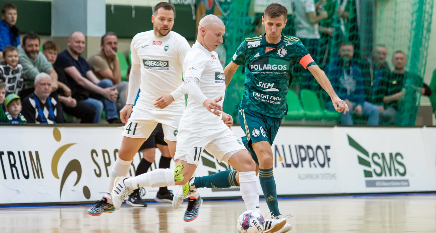 „Legioniści”, do czego przyzwyczaili futsalowych kibiców w ubiegłym sezonie, niemal od startu ulokowali się w środku stawki. Czy tak będzie również na finiszu zasadniczej części rozgrywek, tego oczywiście nie wiemy. W każdym razie po sześciu rozegranych spotkaniach ekipa z Warszawy zajmuje ósmą pozycję, mając na koncie dziewięć punktów. Bilans meczowy Legii obejmuje trzy zwycięstwa i tyleż porażek. Zatem o ile statystyki „z grubsza” nie różnią się od tych z sezonu 2023/24, to już personalnie jest to znacząco inny zespół, od tego który pamiętamy z ligowo-pucharowych bojów sprzed roku, czy kilku miesięcy. Przede wszystkim trenerską batutę od Ołeksandra Kosenki przejął hiszpański szkoleniowiec – Manuel Granados. Kończąc piękną karierę sportową swój ostatni mecz ligowy w barwach Legii rozegrał – akurat przy Startowej 13 – Mariusz Milewski (na zdjęciu, obok Stefana Rakicia). Klub opuścili również Nuno Chuva i Davidson Silva, których zastąpili inni obcokrajowcy – Hiszpan Victor Delgado i Brazylijczyk Fabinho. Natomiast niezmiennie o jakości stołecznej ekipy decydują m.in. Tomasz Warszawski, Andre Luiz i Michał Klaus.