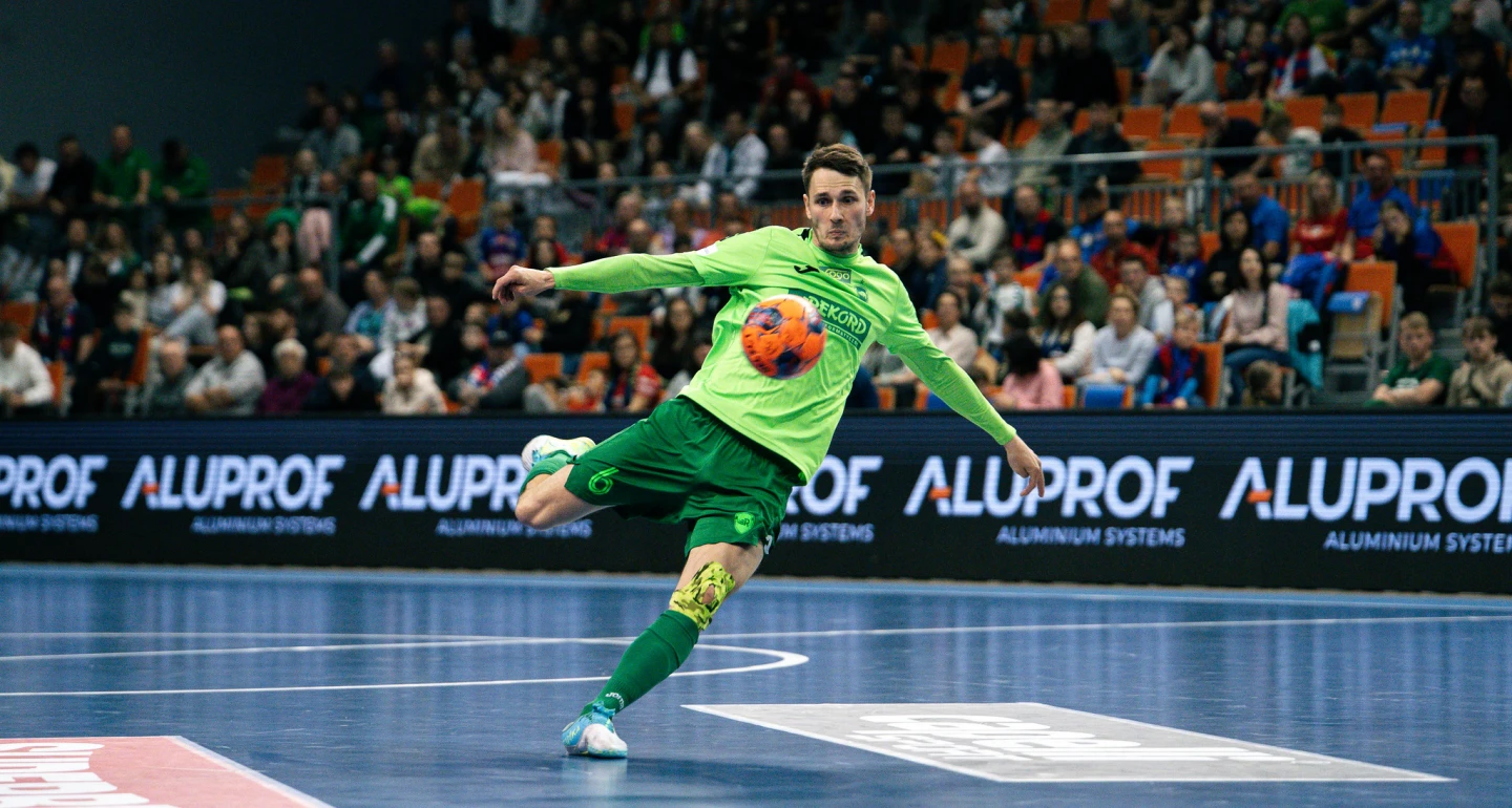 Pierwsza część meczu, choć bezbramkowa, dostarczyła sporo niezłej, futsalowej jakości. Już na starcie dyspozycję Krzysztofa Iwanka sprawdzili m.in. Miguel Pegacha z Breno Bertoline. Odpowiedzią bielszczan był doskonale rozegrany rzut wolny z 7. minuty, gdy po sprytnym dograniu Mikołaja Zastawnika (na zdjęciu) słupek gliwickiej bramki „obił” Paweł Budniak. W krótkim odstępie czasu, w okolicach 10. minuty spotkania, Edgar Varela dwukrotnie przegrał pojedynki z K. Iwankiem. W zbliżonych okolicznościach (12. min.) M. Zastawnik nie zdołał pokonać Michała Widucha. Ciekawą, pierwszą odsłonę zamknął groźnym strzałem z kąta E. Varela, ale i w tym przypadku górą był golkiper Rekordu.
