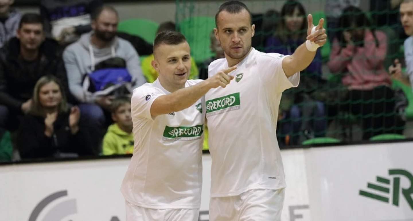 Mimo małych problemów w początkowej fazie meczu, biało-zieloni sprostali roli faworyta, pokonując Red Dragons Pniewy. Kilka pierwszych minut dość niemrawe z obu stron, pierwszy celny strzał w meczu oddał Oleksandr Bondar w 4 minucie, ale piłkę odbił strzegący bramki miejscowych Łukasz Błaszczyk. Tak naprawdę spotkanie nabrało rozpędu po tym, jak Adam Wachoński wyprowadził „Czerwone Smoki” na prowadzenie, w połowie 9. minuty. Dopiero po tej stracie bielszczanie znacznie przyśpieszyli, coraz częściej Ł. Błaszczyk zmuszany był do interweniowania, a w niektórych sytuacjach po prostu brakowało precyzji. Przełamanie nastąpiło w 14. minucie spotkania, O. Bondar wypatrzył w okolicy linii pola karnego Jana Janovsky’ego, kapitan naszego zespołu „położył” obrońcę na parkiecie i strzałem lewą nogą doprowadził do wyrównania. Napór gości trwał, małym przerywnikiem było ładne uderzenie Mateusza Kosteckiego, po klasycznej dla pivota akcji w 15. minucie. Minutę później „rekordziści” wyszli na prowadzenie, rzut wolny, Artur Popławski do Pawła Budniaka, piłka po strzale „Magica” minęła bramkarza z Pniew, a próbujący ją wybić Patryk Hoły trafił do własnej bramki. Mimo jeszcze kilku znakomitych okazji, szczególnie dla gości, wynik do przerwy nie uległ już zmianie.