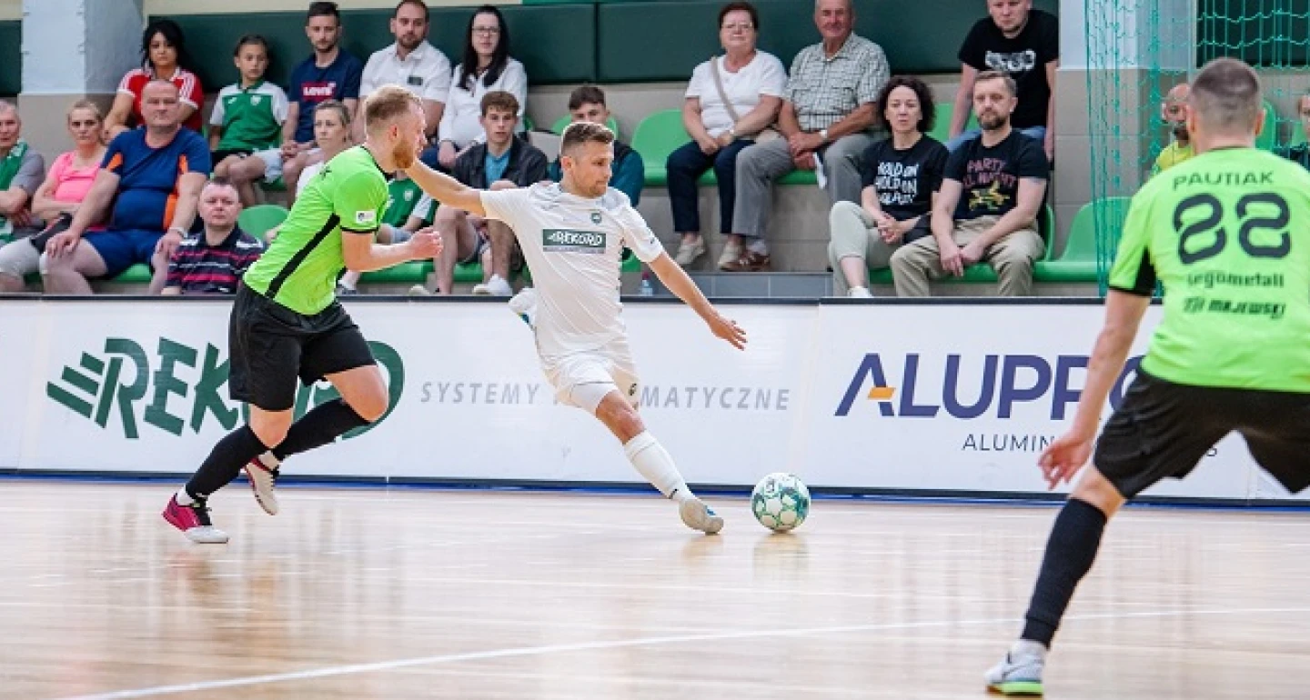 A ta zaczęła się pomyślnie dla ekipy z Wielkopolski. Jedyny błąd w tym spotkaniu popełnił Bartłomiej Nawrat, który chciał „uratować” sytuację, utrzymać piłkę w grze, a wyszło z tej interwencji niezamierzone podanie do Mykyty Storozhuka. Ukrainiec bezceremonialnie wykorzystał nadarzającą się okazję. Kontaktowy gol napędził Red Dragons już do końca spotkania, w którym nie brakowało spięć, fauli i nerwowych sytuacji boiskowych. Tego obrazu nie zmieniła nawet trzecia bramka dla Rekordu, skądinąd po przepięknie wykonanej akcji. W tercecie: Artur Popławski, Paweł Budniak (na zdjęciu), Michał Marek, piłka krążyła – przy zachowaniu proporcji – z prędkością światła.