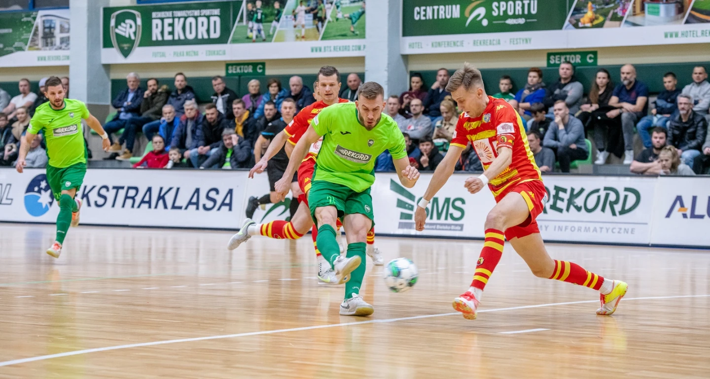 Nie był to z pewnością najlepszy występ wicemistrzów Polski w bieżących rozgrywkach FOGO Futsal Ekstraklasy. Długimi fragmentami gra biało-zielonych nie przypominała świetnej dyspozycji z pierwszej fazy sezonu. Tempo, dokładność, pomysłowość w ofensywie, to wszystko było przez większą część spotkania w wykonaniu „rekordzistów” – na nie. Co gorsza, łatwo dostrzegalna była nerwowość, co miało wymierne przełożenie na faule. Ich limit w obu połowach bielszczanie przekroczyli w okolicach 10. minuty.