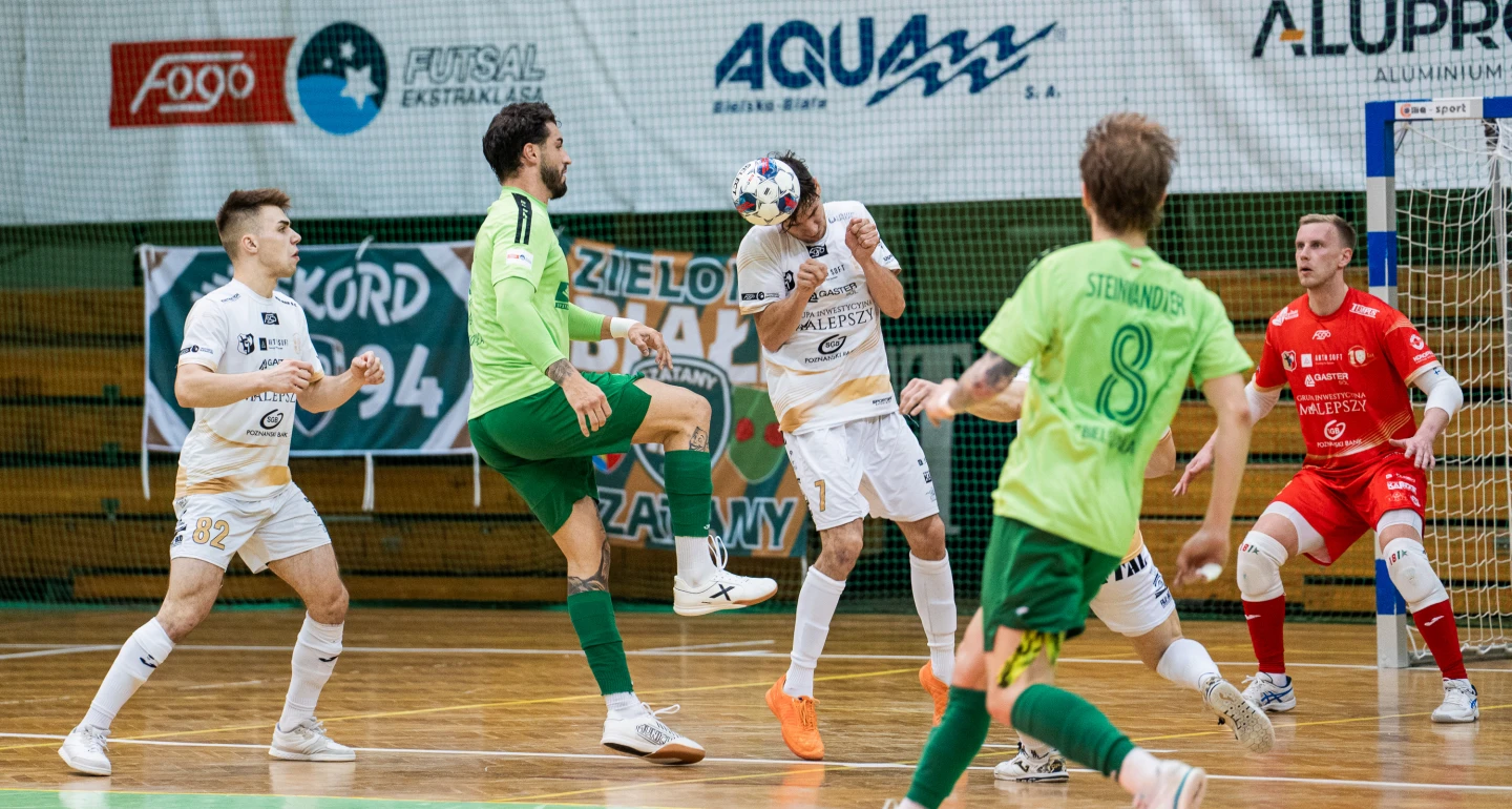 Pewności siebie „rekordzistów” nie zachwiało nawet niespodziewane trafienie M. Lisowskiego, który po długim zagraniu od fińskiego bramkarza głową pokonał Krzysztofa Iwanka, który w 30. minucie zameldował się w bielskiej bramce. Po ledwie jednej minucie, w jeszcze bardziej osobliwych okolicznościach, golem odpowiedzieli biało-zieloni. Zamiarem Martina Došy było zapewne dogranie do pivota, tymczasem wyszedł nadspodziewanie precyzyjny lob, po którym piłka wylądowała „w sieci”. Wprawdzie trener Tomasz Trznadel natychmiast zareagował wprowadzeniem „lotnego” bramkarza – Adriana Skrzypka, jednak odrobienie dwubramkowej straty wydawało się być mało prawdopodobne. Tymczasem w ostatniej minucie podstawowego czasu gry leszczynianie dokonali „remontady”. Uderzenie z 10-ciu metrów i gol Artema Rosa można tłumaczyć spóźnionym doskokiem do Ukraińca, trudno jednak zracjonalizować utratę bramki na 3:3. 39:59.03 – taki czas wskazywał zegar w hali, gdy do autu na wysokości pola bramkowego podszedł Daniel Gallego. Silne wstrzelenie piłki przez Kolumbijczyka, dwa rykoszety „rekordzistów” i piłka znalazła drogę do bramki, tuż przed wybrzmieniem syreny…