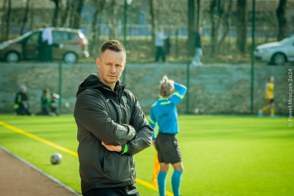 Po 1:5 z katowickim GKS-em rozmawiamy z trenerem „rekordzistek” – Mateuszem Żebrowskim, w tle obrazy z meczu 1/8 Orlen Pucharu Polski.