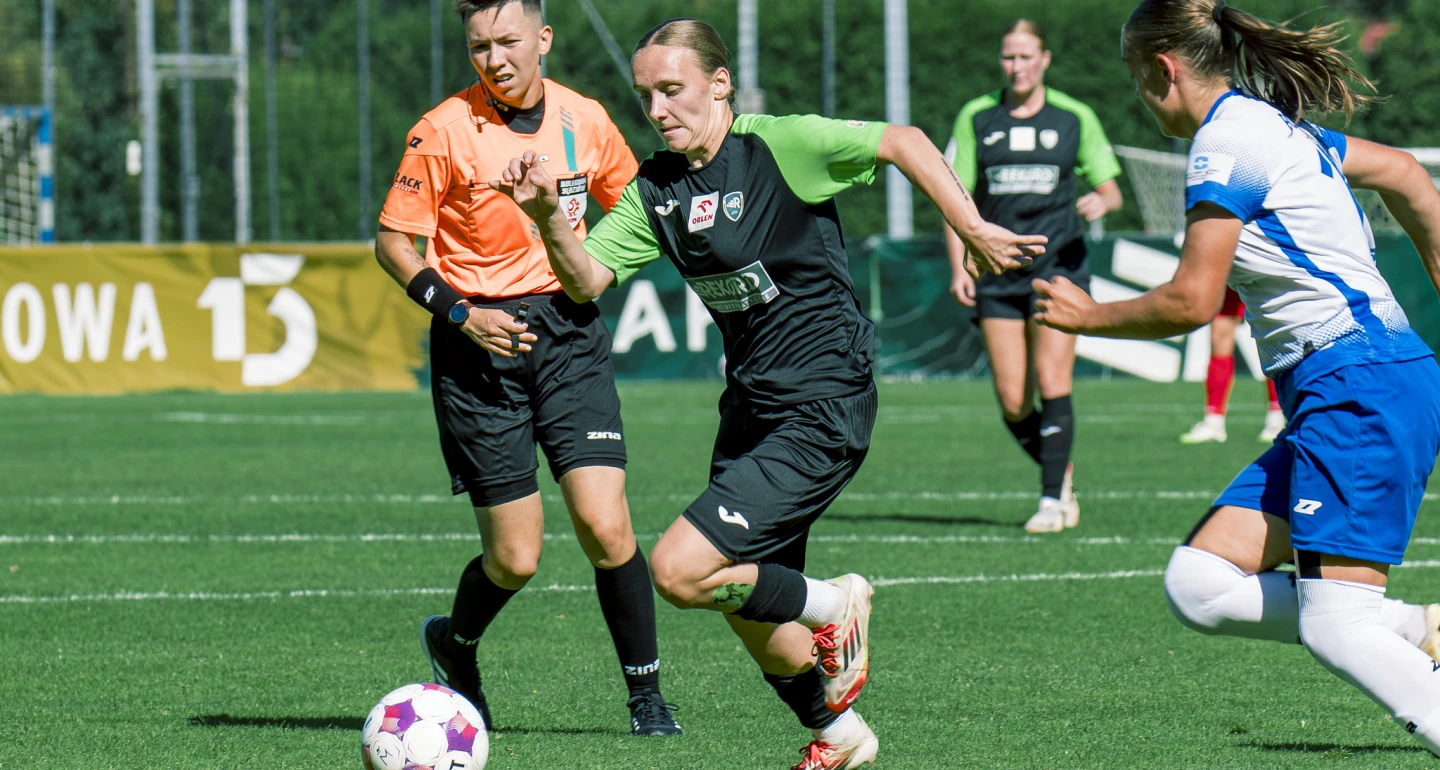 Biało-zielone nie odmieniły niekorzystnych trendów w ligowych konfrontacjach z UKS SMS, nie „odczarowały” boiska przy Startowej, gdzie nie zwyciężyły od pół roku. Na marginesie, 23 marca br. „rekordzistki” ograły u siebie 2:1 najbliższe rywalki, gospodynie sobotniego meczu – gdański AP Orlen, po dwóch trafieniach Nikoli Dębińskiej (na zdjęciu).