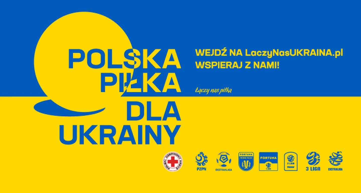 Internetowa zbiórka funduszy rozpocznie się 1 marca równolegle do najbliższych meczów Fortuna Pucharu Polski, a następnie będzie kontynuowana w trakcie najbliższych kolejek PKO Bank Polski Ekstraklasy, Fortuna 1. Ligi, eWinner 2. Ligi, 3. Ligi, a także Ekstraligi kobiet. Cały polski futbol wspiera Ukrainę! Zbiórka pieniędzy zostanie przeprowadzona we współpracy z Polskim Czerwonym Krzyżem.