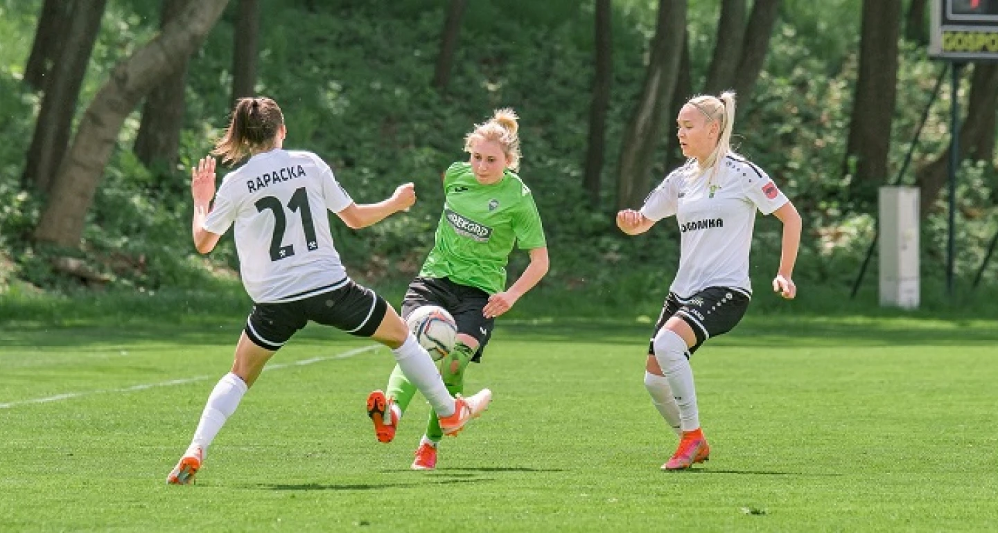 Choć bezspornie przewaga należała do przyjezdnych, a drugie trafienie dorzuciła w 23. minucie Macleans Chinonyerem, to podopieczne Mateusza Żebrowskiego nadal nie ustawały w próbach „kąsania” wiceliderem ekstraligowej tabeli. Wysiłek opłacił się, bowiem gola kontaktowego strzałem „z wapna” zdobyła Wiktoria Nowak (na zdjęciu). „Jedenastka” podyktowana została za zablokowanie ręką piłki przez Nataszę Górnicką, po uderzeniu Katarzyny Moskały. Co więcej, kilka minut później bliska doprowadzenia do remisu była Julia Gutowska, która jednak nie zdołała pokonać Anny Palińskiej w sytuacji sam na sam.