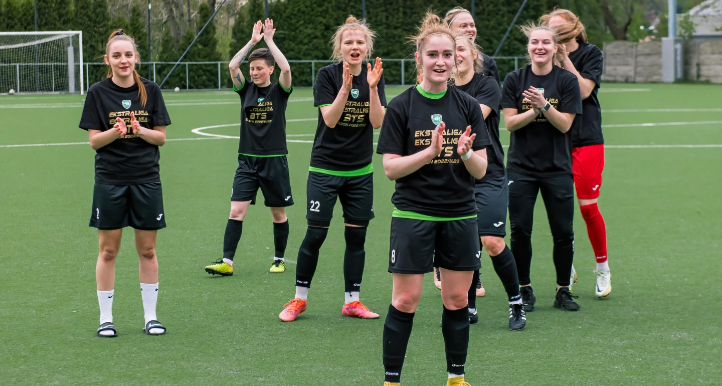Magdalena Skolarz (na zdjęciu, na pierwszym planie) i Klaudia Nowacka (pierwsza z lewej), po wielu latach spędzonych w klubie z Cygańskiego Lasu, kończą/zawieszają sportową karierę. Laura Kłębek obiera intrygujący kierunek nauki i kontynuacji piłkarskiej przygody. Natomiast dwuletnia umowa klubu z Patrycją Rżany dobiegła końca. Z trzema wymienionymi na wstępie „rekordzistkami” mieliśmy sposobność porozmawiać przed kamerą.
