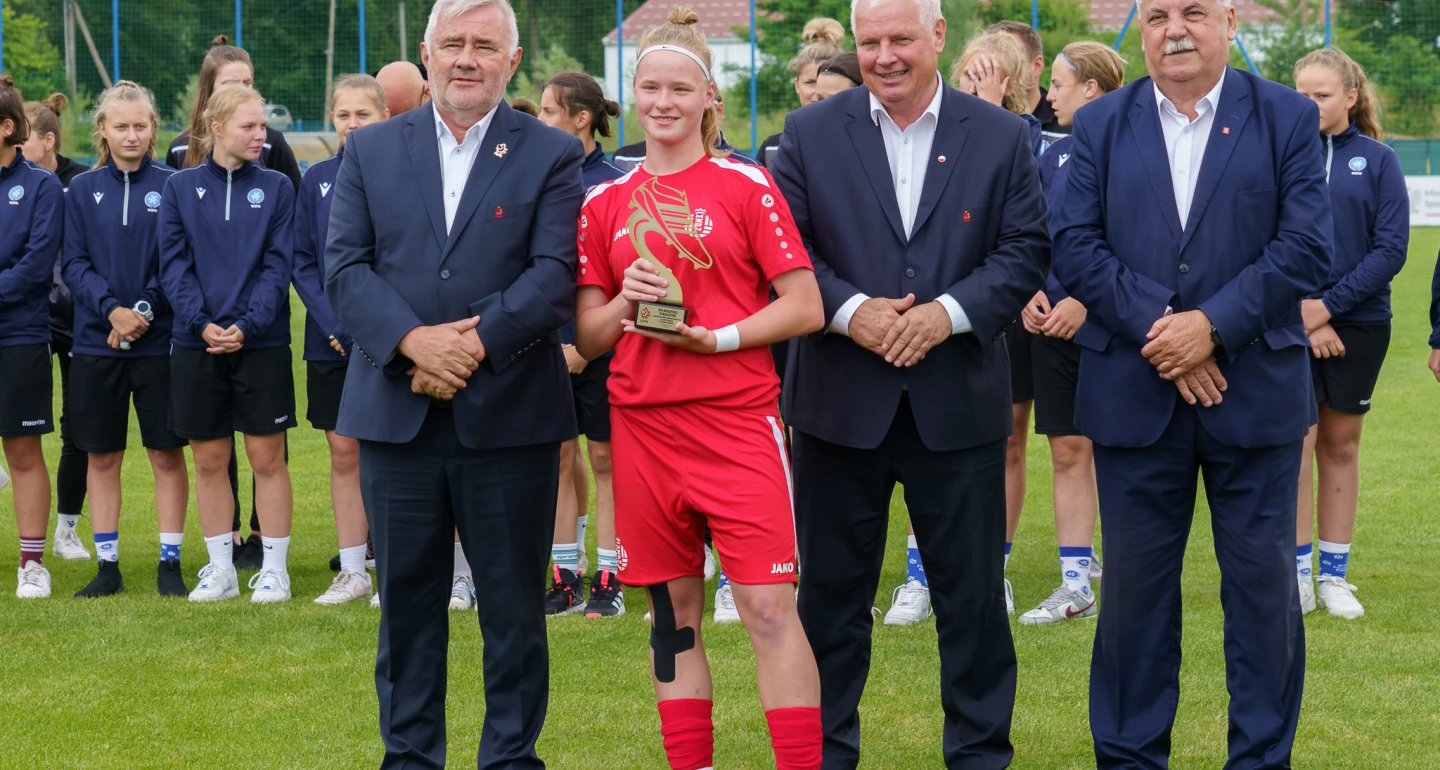 Wywodząca się z Suchej Beskidzkiej Natalia Skrok, wychowanka Wisły Brzeźnica, trafiła do klubu z Cygańskiego Lasu dopiero przed kilku dniami. Jednak nazwisko zawodniczki już wcześniej znalazło się w notesie trenerki kadry U-15 Pauliny Kawalec. N. Skrok sięgnęła z reprezentacją Małopolskiego ZPN po złoty medal w czerwcowych finałach OOM „Śląskie 2023”. Indywidualnie cieszyła się z tytułu „królowej strzelczyń” (na zdjęciu), z dorobkiem czterech goli.