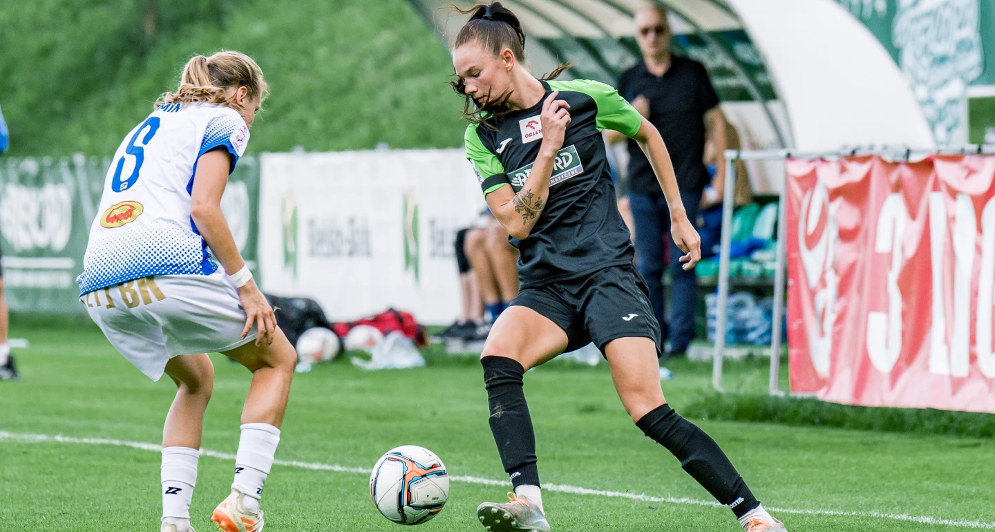 Sporo walki, biegania, ale bez szczególnie klarownych sytuacji bramkowych – tak należy scharakteryzować drugą połowę meczu. Z ciekawszych jej momentów warto odnotować uderzenie D. Długokęckiej, po którym piłka odbiła się od poprzeczki. Łodzianki miały świetną, spudłowaną okazję, po stałym fragmencie z 70. minuty spotkania.