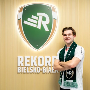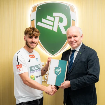 Do kadry biało-zielonych drugoligowców dołączył Kacper Sommerfeld, na zdjęciu z prezesem klubu – Januszem Szymurą.