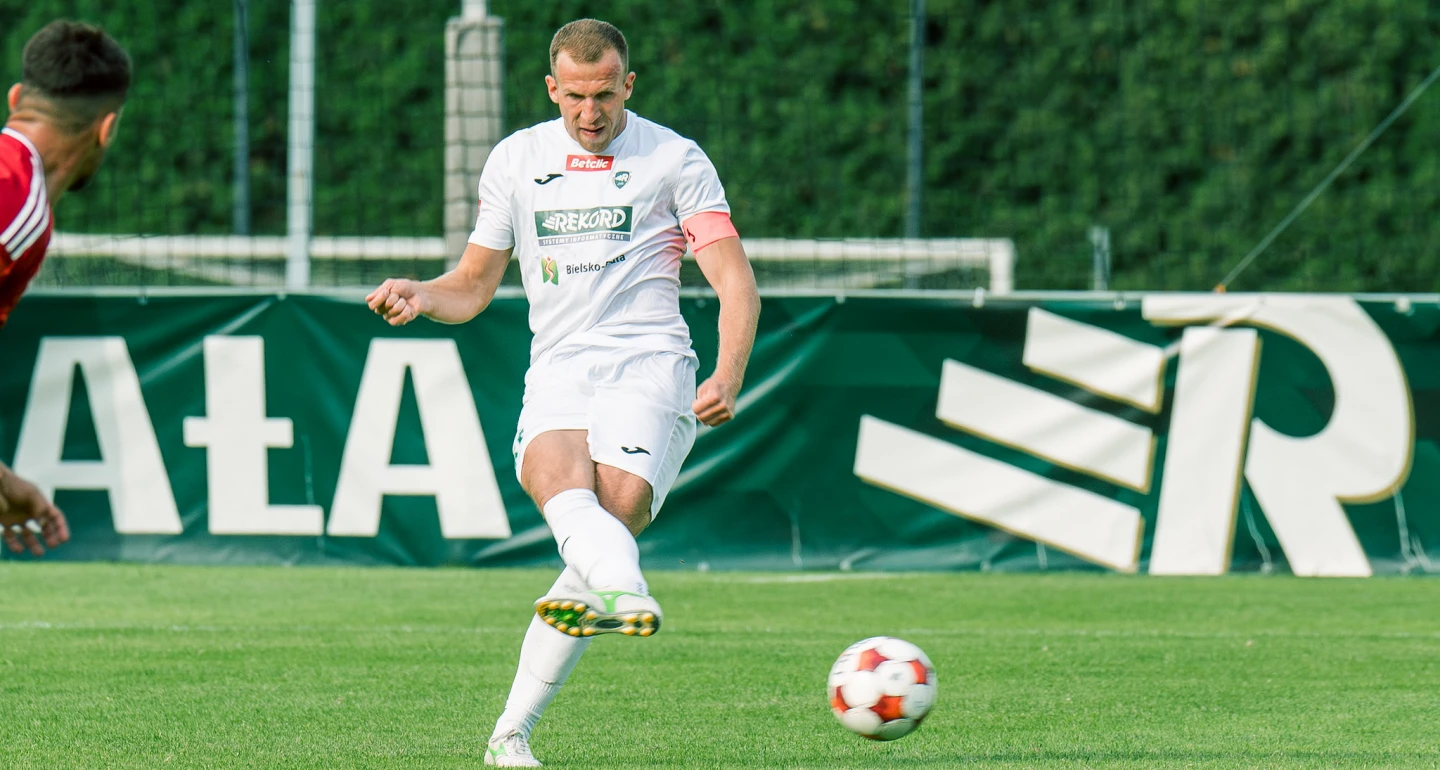 W 20. minucie, bez kontaktu z rywalem, na murawę upadł środkowy obrońca „rekordzistów”. Kontuzjowanego kapitana biało-zielonych zmienił Krystian Wrona