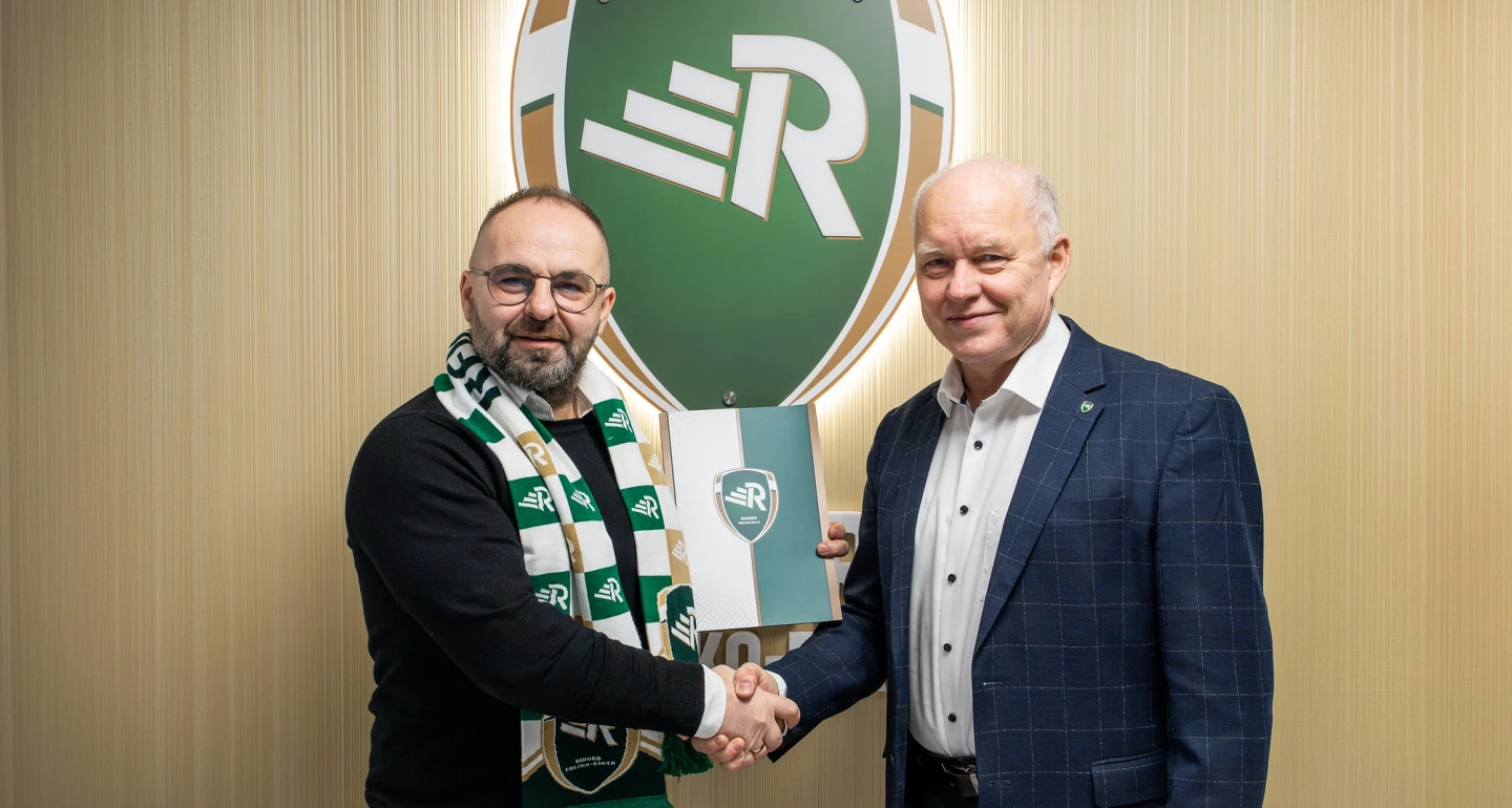 To był pracowity dzień Piotra Tworka, na zdjęciu z prezesem klubu Januszem Szymurą, przy Startowej 13.