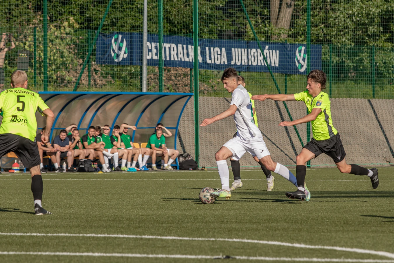 Katowiczanie przez trzy kwadranse pierwszej odsłony bronili się bardzo umiejętnie, w czym nie było przypadkowości, zbiegu okoliczności, czy łutu szczęścia. Po części realizację zadań taktycznych ułatwili rezerwom GKS-u sami bielszczanie. Przez długi czas ataki rekordzistów były zbyt wolne i schematyczne, nietrudne do rozszyfrowania dla defensywy kierowanej przez Kamila Cholerzyńskiego. Kilka wyśmienitych interwencji zaliczył także golkiper „Gieksy” – Patryk Kukulski. Ot, choćby broniąc na wstępie dwa uderzenia Tomasza Nowaka. W końcówce tej fazy meczu katowicki bramkarz błysnął interweniując przy strzale Dawida Kasprzyka oraz uprzedzając w polu karnym nacierającego Szczepana Muchę. Tyle, że wówczas gospodarze prowadzili już 1:0. Szarżującego Szymona Zająca nie powstrzymali na własnej połowie T. Nowak i Mateusz Pańkowski, a nadbiegający z głębi pola Bartosz Wodnicki przymierzył do bielskiej bramki z niesłychaną precyzją.