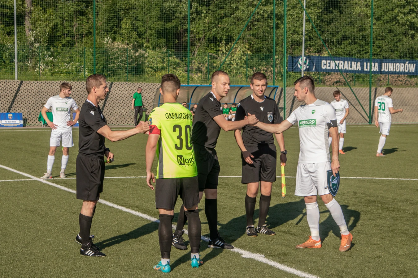 Na starcie drugiej połowy Mirosław Żebrowski główkując zmusił Vołodymyra Kotelbę do dużego wysiłku. Dla ukraińskiego bramkarza Rekordu to była pierwsza – i nie ostatnia – tak spektakularna interwencja w meczu. Po mocnym akcencie na rozpoczęcie drugiej partii ze strony katowiczan, z czasem do głosu doszli biało-zieloni. Jeszcze po uderzeniach głową Daniela Ferugi i D. Kasprzyka piłka minęła światło bramki, ale już T. Nowak strzałem z rzutu wolnego, z ok. 17-stu metrów zdołał piłkę zaadresować nad murem, w okienko bramki GKS-u II. Na jeszcze wyższy obroty pomógł wejść biało-zielonym wprowadzony do gry Kacper Kasprzak. Rajdy 19-latka siały sporo zamętu w w defensywie gospodarzy, a uderzenie zza linii pola karnego z 65. minuty okazało się być przełomowym momentem spotkania. Piłka wprawdzie odbiła się od poprzeczki, ale trafiła pod nogi optymalnie ustawionego przed bramką D. Kasprzyka, któremu pozostało skierować ją do bramki.