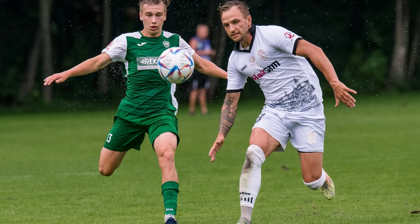 Z najważniejszych faktów bielsko-wodzisławskiej konfrontujmy kilka tych o kluczowym znaczeniu. Gola otwarcia świetnym uderzeniem głową zdobył Ihor Karpenko, po znakomitym dośrodkowaniu Przemysława Szkatuły. Gospodarze odpowiedzieli dopiero po przerwie. Z rzutu karnego przymierzył Tomasz Nowak, a „jedenastka” została podyktowana za przewinienie na Filipie Walusiu (na zdjęciu). Stan remisowy utrzymał się tylko przez dwie minuty, po których Kacper Kasprzak „sprezentował” otwierające podanie Jakubowi Kuczerze. Trafienie w sytuacji sam na sam z bramkarzem było najzwyklejszą formalnością. Opisu sytuacji z 75. minuty wolelibyśmy uniknąć, zwłaszcza że dla samego przebiegu spotkania, jego wyniku i miała kluczowego znaczenia. Ale jak skwitować, skomentować zdarzenie, w którym po uderzeniu łokciem trafiony zawodnik leży na murawie z trzema wybitymi zębami, a z ust leje się krew? Ofiarą w tym starciu był kapitan Rekordu – Kamil Żołna, agresorem I. Karpenko. Co gorsza, arbiter nie dostrzegł w tym starciu niczego nieprzepisowego, podobnie jak jeden z asystentów, który musiał, a przynajmniej powinien, widzieć zajście przy linii środkowej. Kartkowa konsekwencja spotkała jedynie protestującego wobec sędziowskiej bezczynności T. Nowaka. Gola na wagę jednego punktu dla gospodarzy strzelił głową Marcin Wróbel, po dośrodkowaniu T. Nowaka.