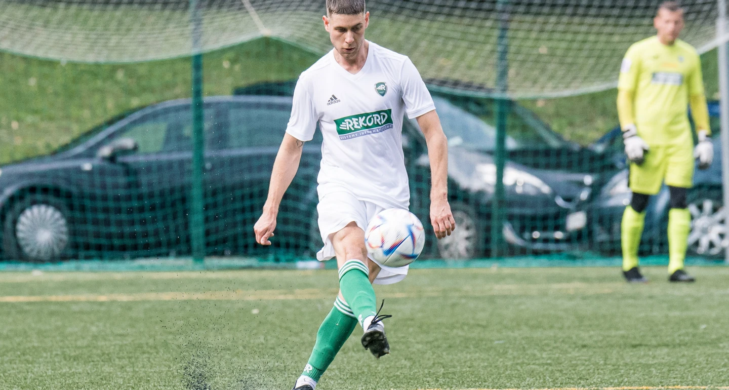 Już pierwszy kwadrans spotkania minął przy przewadze gospodarzy, którzy nękali defensywę i bramkarza gości uderzeniami zza linii pola karnego. Niezłe, choć niecelne strzały, oddali m.in. Bartosz Kowalczyk (na zdjęciu) i Łukasz Szczurek. W krótkim odstępie czasu „rekordziści” zapewnili sobie dwubramkową zaliczkę i spokój na długie minuty meczu. Po niedokładnie rozegranym przez bestwinian rzucie rożnym błyskawiczna kontrę wyprowadził Ł. Szczurek, a całą akcję po kilku dryblingach celnym strzałem przy słupku zamknął Hubert Żyrek. Nie minęło 120 sekund, gdy Ł. Szczurek obsłużył podaniem Jakuba Kempnego, a ten niesygnalizowanym strzałem z dystansu zaskoczył Adriana Słodczyka. Piłka wpadła do bramki w okolicach jej okienka.