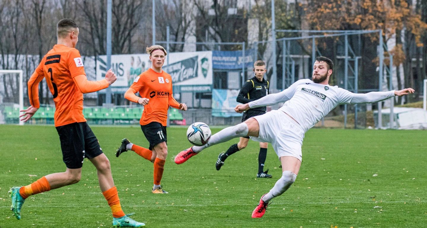 Przy kolejnych trafieniach 24-latka asystował Tomasz Nowak, w pierwszym przypadku po rzucie rożnym, w drugim – po tzw. szybkim ataku. Jeszcze przed przerwą biało-zieloni zdołali podwyższyć prowadzenie. Składną akcję rekordzistów podaniem domknął Szymon Wróblewski, a sfinalizował Szczepan Mucha.