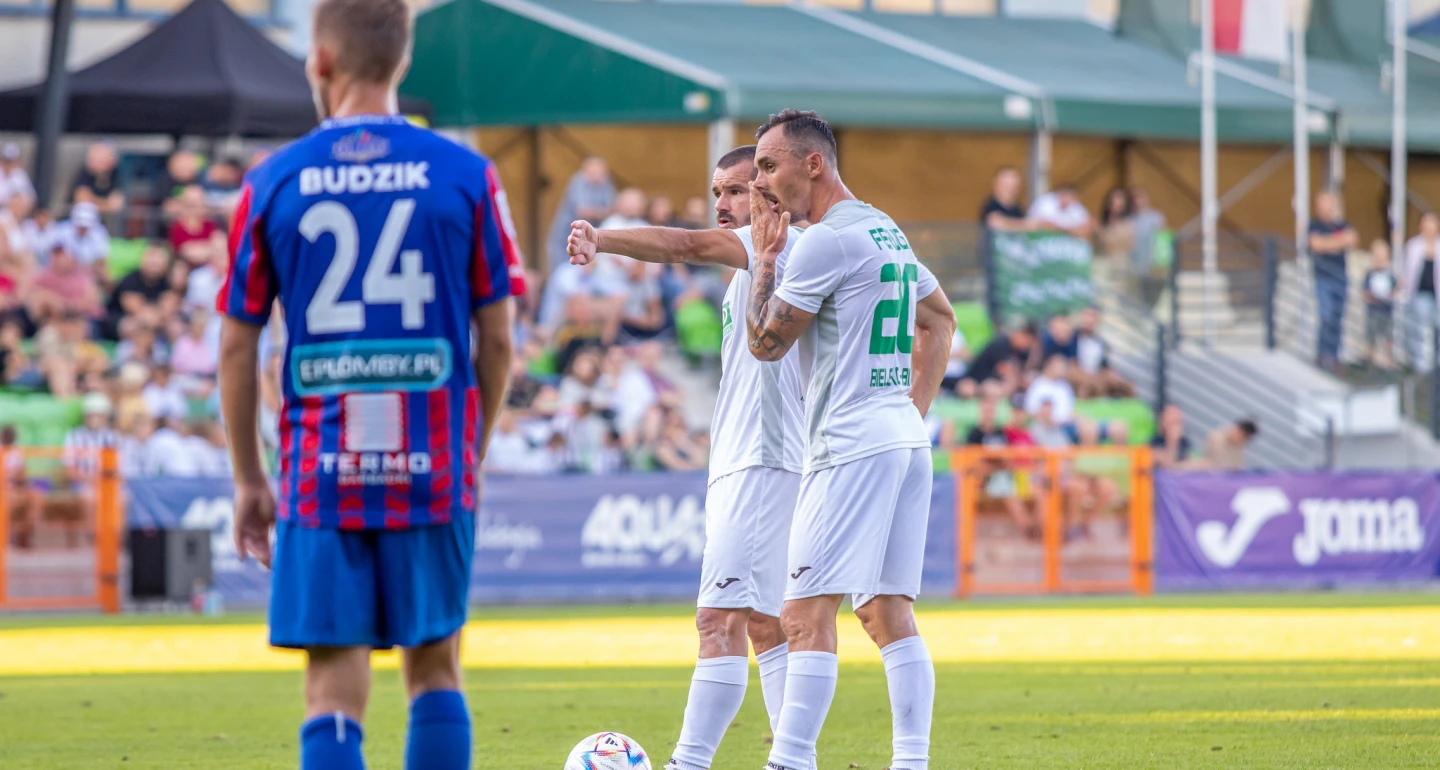 Całkiem inaczej od strony personalnej prezentują się składy zespołów, które zajęły pozycje na umownym podium pierwszej części rozgrywek. U wicelidera, w ekipie bytomskiej Polonii nie brakuje piłkarzy, o których śmiało można napisać – ludzie z rozpoznawalnym nazwiskiem. W przypadku biało-zielonych nikomu nie trzeba szerzej przedstawiać np. Tomasza Nowaka, czy Daniela Ferugi (obaj na zdjęciu). Od debiutu w reprezentacji U-21 futbolowa Polska zna postać Szczepana Muchy. Pozostali zdjęli „łatkę anonimowości” dopiero fantastycznym występem pucharowym. Ale i w ligowej codzienności niewiele ekipie z Cygańskiego Lasu można zarzucić, o czym więcej i szerzej niebawem, w rozmowie z trenerem Dariuszem Mrózkiem.