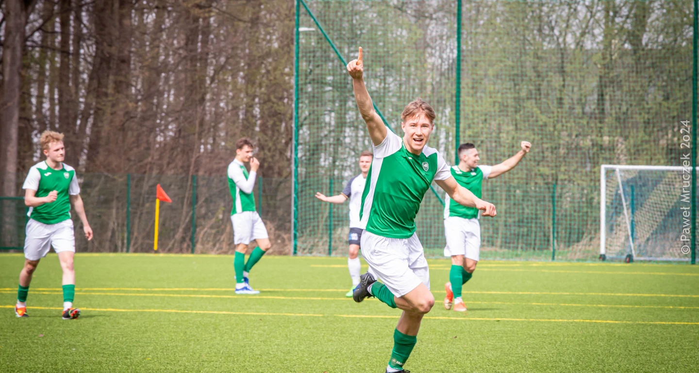 - Ten mecz był zderzeniem młodości z doświadczeniem. U gospodarzy m.in.: Jakub Legierski, Damian Szczęsny i Kamil Adamek, a w Rekordzie II np. Jakub Kempny (na zdjęciu) – rocznik 2004, który jako najstarszy pełnił rolę Papy Smerfa. Z perspektywy boiska jednak nie było widać liczonej w latach przepaści. „Rekordziści” grali niezwykle dojrzale oraz odpowiedzialnie. Przeplatali umiejętnie atak pozycyjny z szybkim. I po tym drugim - błyskawicznej i idealnej jakościowo wyprowadzonej kontrze, którą rozpoczął nasz bramkarz – Wiktor Żołneczko, przez Huberta Żyrka, Olafa Sobika, Mateusza Tekielego, po Szymona Młocka, padł gol. Bramkę „do szatni” straciliśmy grając bez opatrywanego za linią Młocka, co nie umniejsza asyście z lewego narożnika i ładnej bramce zdobytej główką przez Tomasza Olszara. W drugiej połowie oglądaliśmy prawdziwe, piłkarskie „fajerwerki”. Wiele perfekcyjnych interwencji bramkarzy, sytuacje sam na sam Żyrka oraz Huberta Matykiewicza, strzał nie do obrony, jednak sparowany przez Żołneczkę, no i gol na 2:1. Akcja po prawej stronie boiska miała takie tempo, któremu nie dorównało… Tempo. Asystował Sobik, ponownie celnie strzelał Młocek.