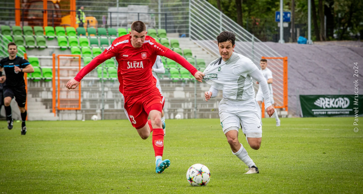 Styl i poziom wygranej 3:0 z wrocławską Ślęzą zadowolił chyba najwybredniejszych sympatyków Rekordu. W samej grze biało-zieloni zachowali optymalny balans między ofensywą, a grą obronną, jak chyba w żadnej z wcześniejszych, wiosennych potyczek. Trenera Dariusza Klaczę cieszy utrzymująca się na dobrym poziomie dyspozycja strzelecka Daniela Świderskiego, zdobywcy dwóch goli. Satysfakcjonujący, napawający optymizmem debiut w wyjściowej jedenastce zaliczył Michał Śliwka (na zdjęciu), a Filip Waluś zanotował pierwsze trafienie od październikowego 3:0 z Wartą. Kolejne „zero z tyłu” jest również wartością nie do przecenienia. Sielski obrazek zakłóca w obliczu sobotniego spotkania kartkowa absencja Bartłomieja Twarkowskiego oraz problemy zdrowotne Mateusza Madzi.
