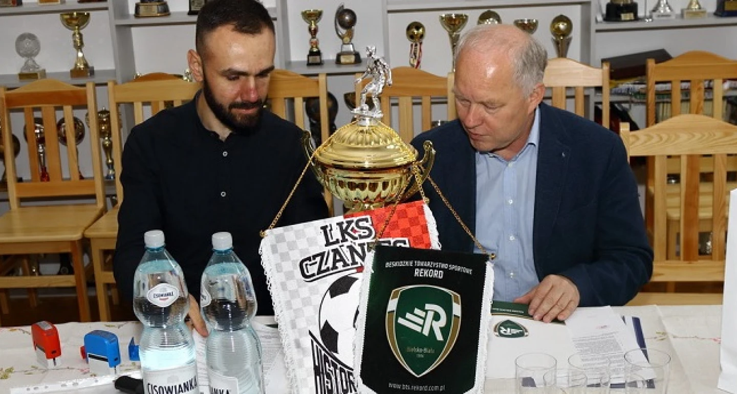 Tak było w czasach występów w „okręgówce”, czwartej i trzeciej lidze, tak jest nadal w zmaganiach pucharowych w bielskim podokręgu Śląskiego ZPN. Nadeszła jednak pora, by wyjść poza ramy dotychczasowej rywalizacji, czas współpracy i współdziałania. Sobotni sparing drużyn seniorskich stał się doskonałą okazją do podpisania przez prezesów obu klubów – Janusza Szymurę i Mateusza Waligórę (na zdjęciu w trakcie parafowania), partnerskiej umowy. Jej pierwszym symptomem był wspomniany mecz kontrolny, drugim, równie konkretnym – czasowy transfer, wypożyczenie Macieja Marka do czwartoligowca. O pozostałych, niemniej istotnych szczegółach w filmowym materiale Rekord TV.