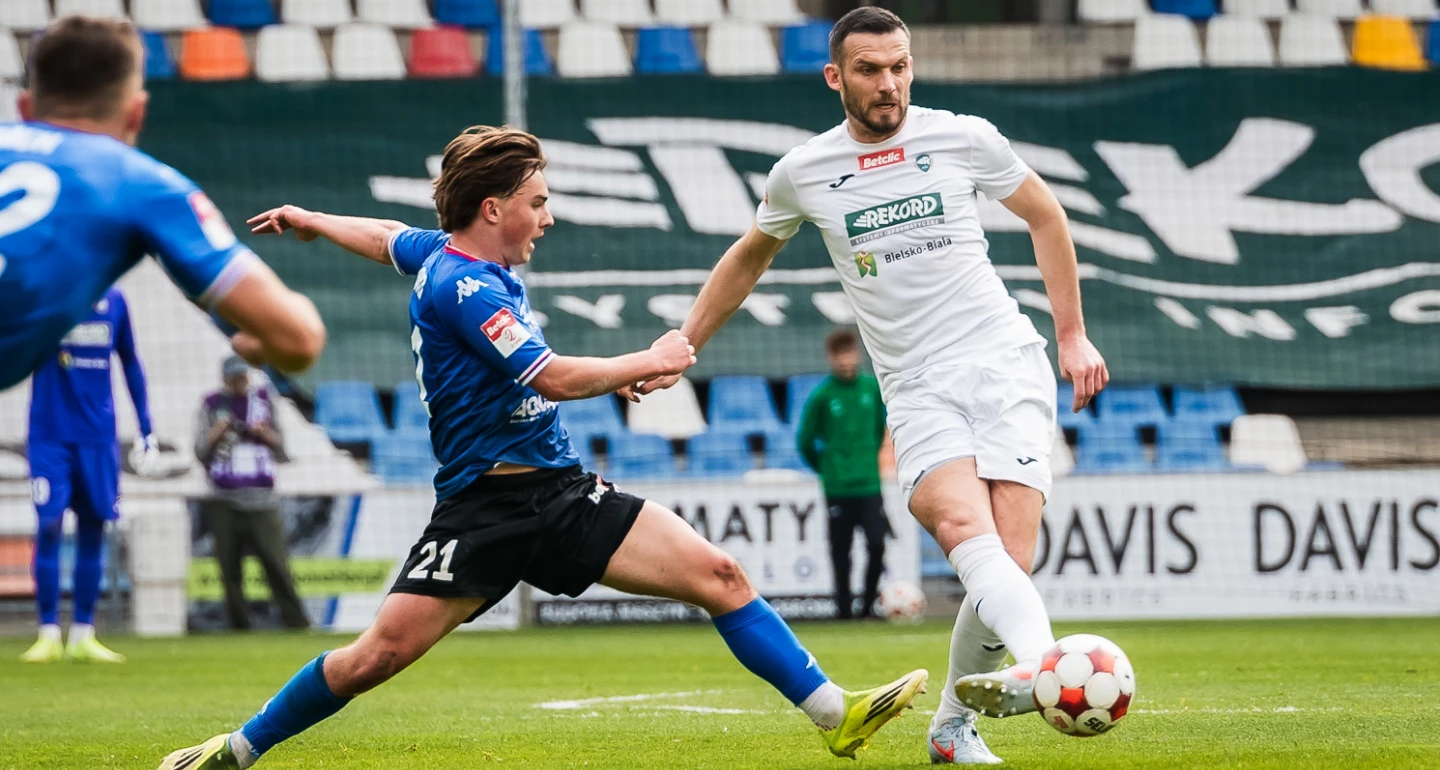 - Dzięki za gratulacje. Trzy kwadranse pierwszej części były dla obu stron nerwowe. Nie wiem, być może ranga spotkania wywołała u nas taki boiskowy paraliż? Przez to, w niektórych fragmentach pierwszej połowy graliśmy tak, jak tego chciało i oczekiwało Podbeskidzie. To z kolei skutkowało utratą gola oraz kolejnymi szansami dla rywali.