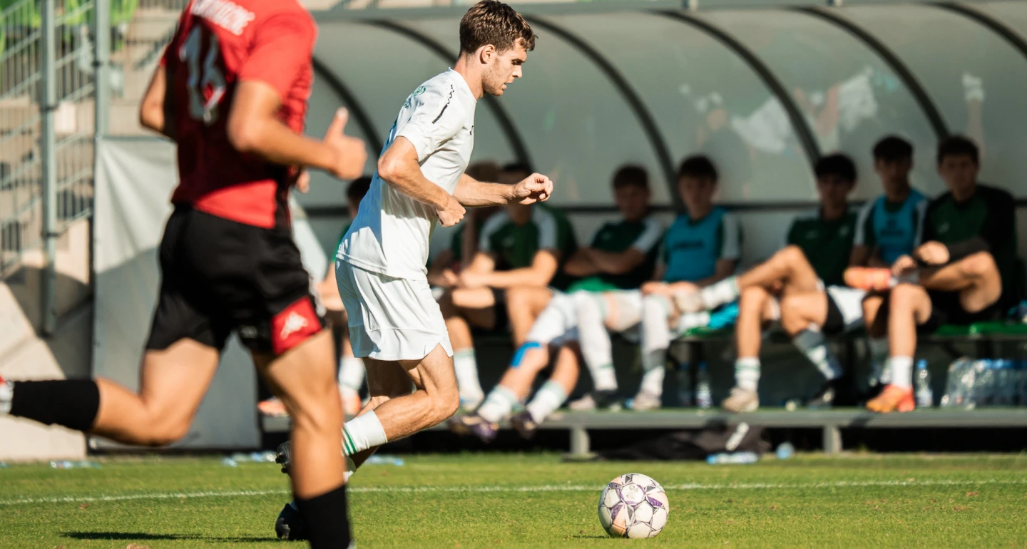 W pierwszej połowie bielska młodzież chyba trochę zaskoczyła ekipę gości szybkością w operowaniu piłką, w ogóle – tempem działań ofensywnych. W 14. minucie po dograniu z bocznego sektora Louisa Poznańskiego (na zdjęciu) nieznacznie chybił uderzający z powietrza Filip Sapiński. Z kolei dwie próby strzeleckie 17-latka z 21. minuty ofiarnie zablokowali obrońcy Beskidu. Na finiszu pierwszej odsłony, po silnym strzale Kacpra Kura z dystansu, piłka minimalnie minęła słupek bramki Konrada Krucka. Nieco później, w podbramkowym „karambolu” po kornerze gospodarzy, futbolówka otarła się o słupek.