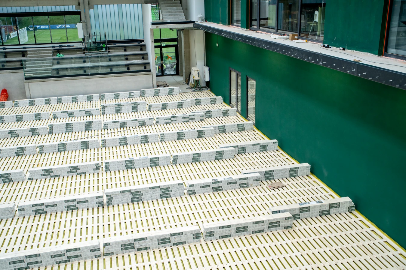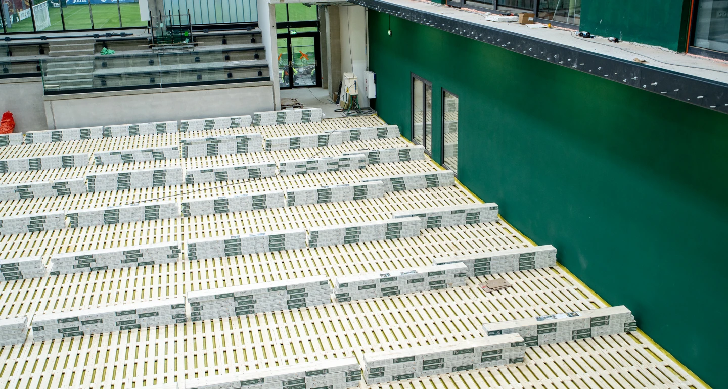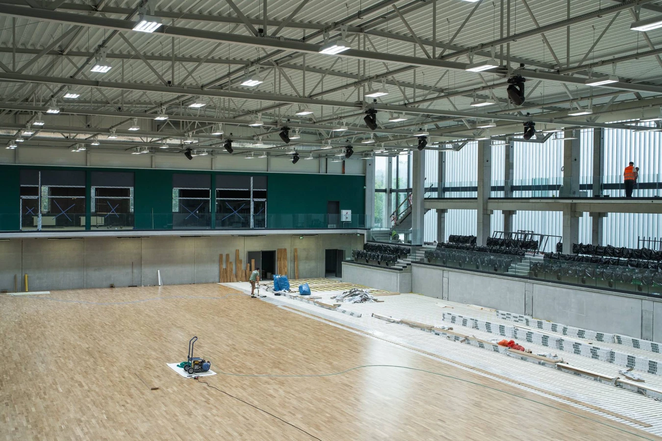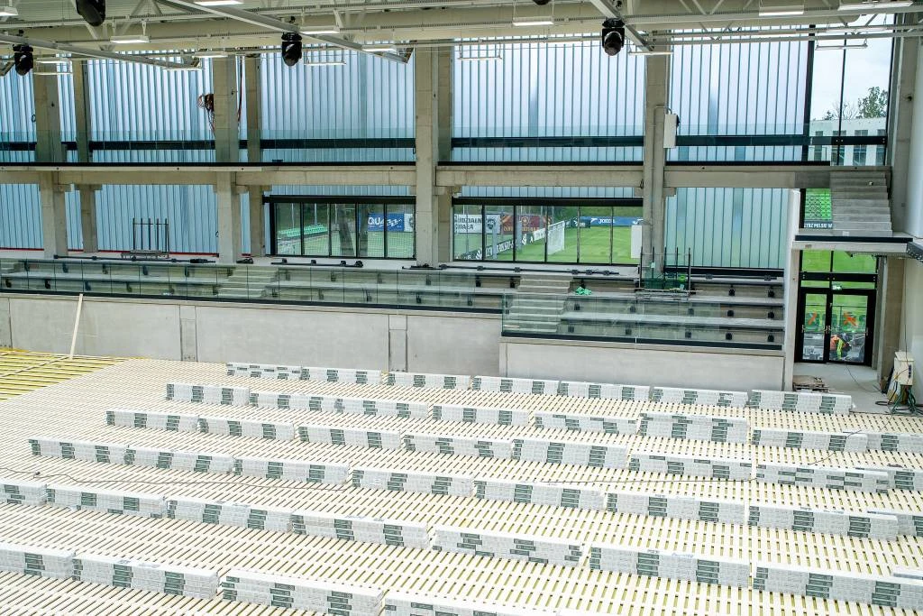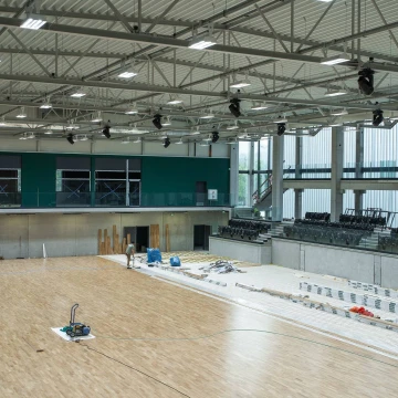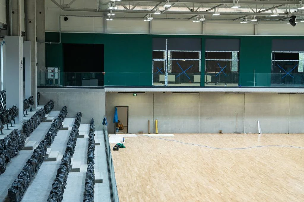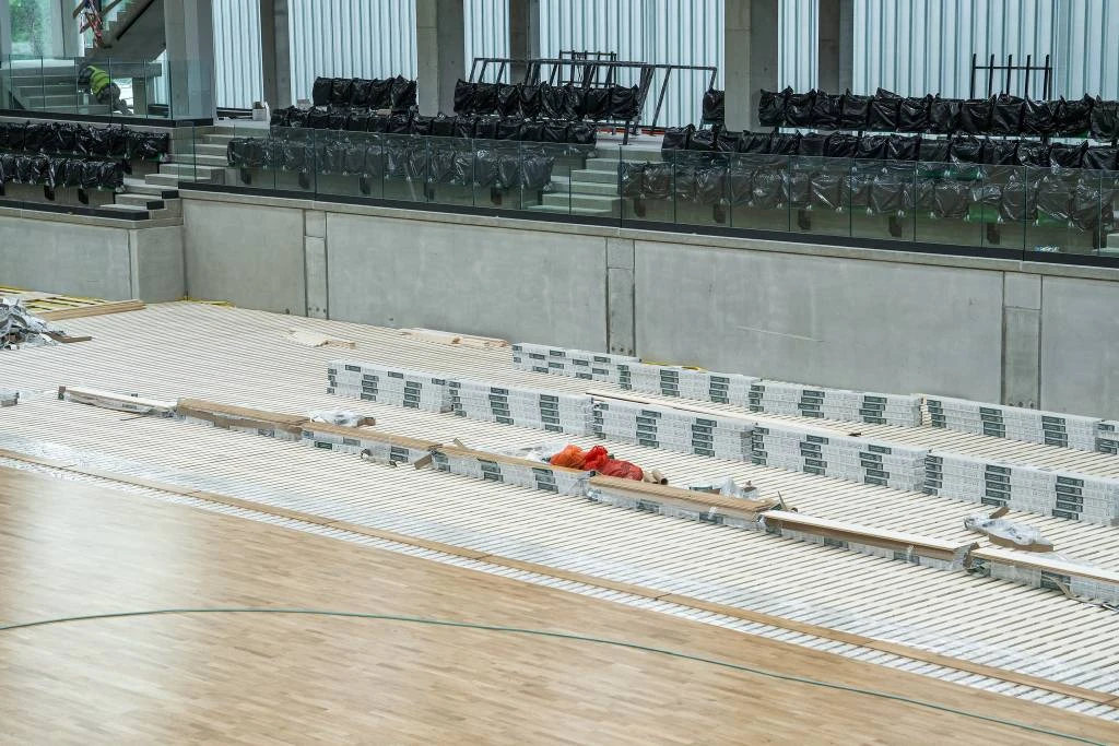 Końcem września rozpoczęły się prace montażowe, które widoczne są "gołym okiem". Na trybunach swoje miejsca zajęły krzesełka. Na posadzce boiska zamontowano specjalną kratownicę, a na niej kładziony jest parkiet.