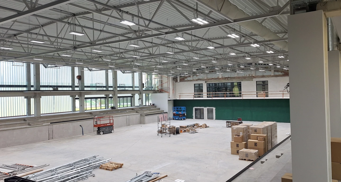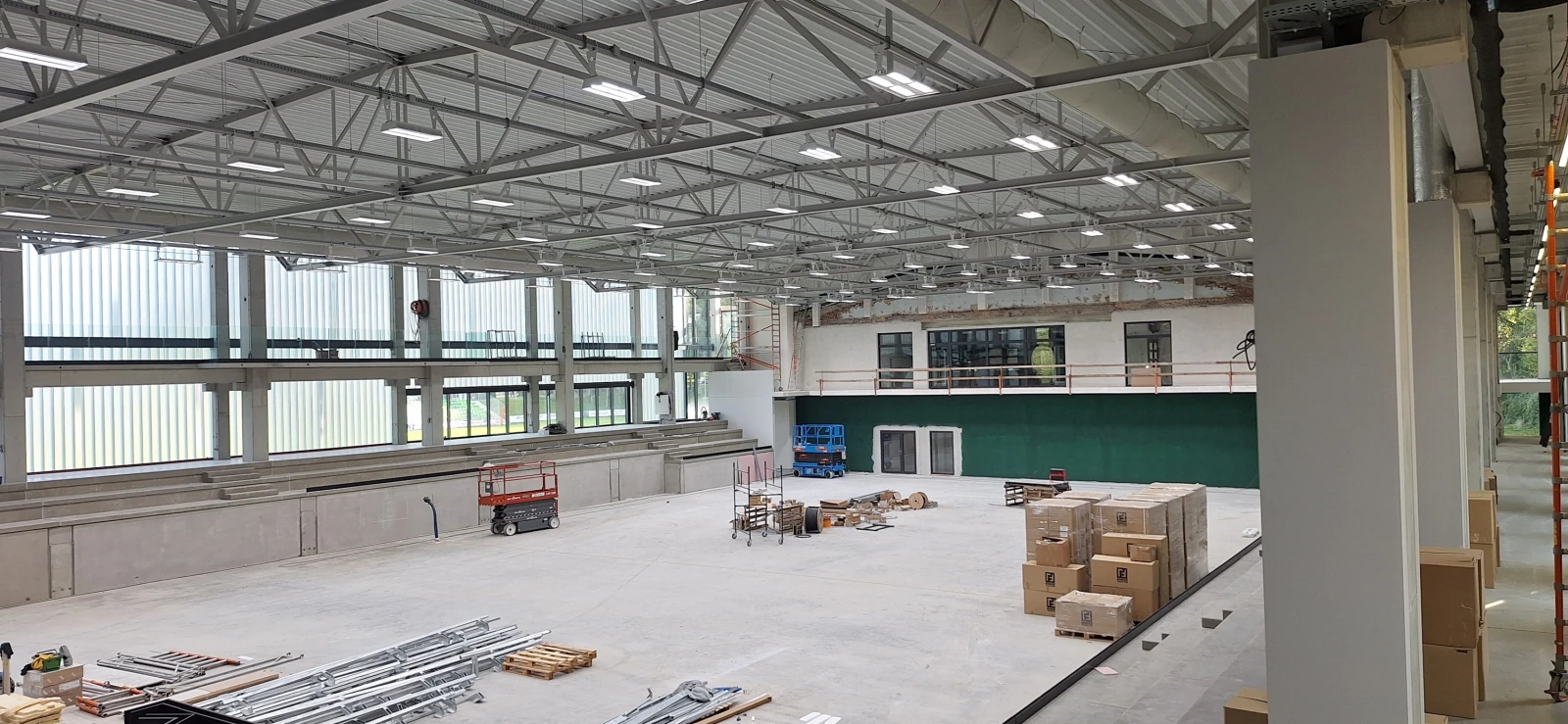W ostatnim okresie budowa osiągnęła ważny etap – obiekt został w pełni zamknięty. Wszystkie elementy stolarki okiennej zostały dostarczone i zamontowane, co pozwala na prowadzenie dalszych prac wewnątrz hali niezależnie od warunków pogodowych.