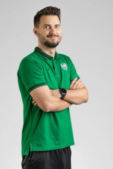 Dolny rząd od lewej: Oksana Shevchuk, Maja Becker, Błażej Horecki (fizjoterapeuta), Wiktoria Berdys (kierowniczka drużyny), Samuel Jania (I trener), Piotr Szymura (wiceprezes klubu), Jakub Piecha (II trener), Katarzyna Moskała (asystentka trenera), Natalia Majewska, Maja Fal