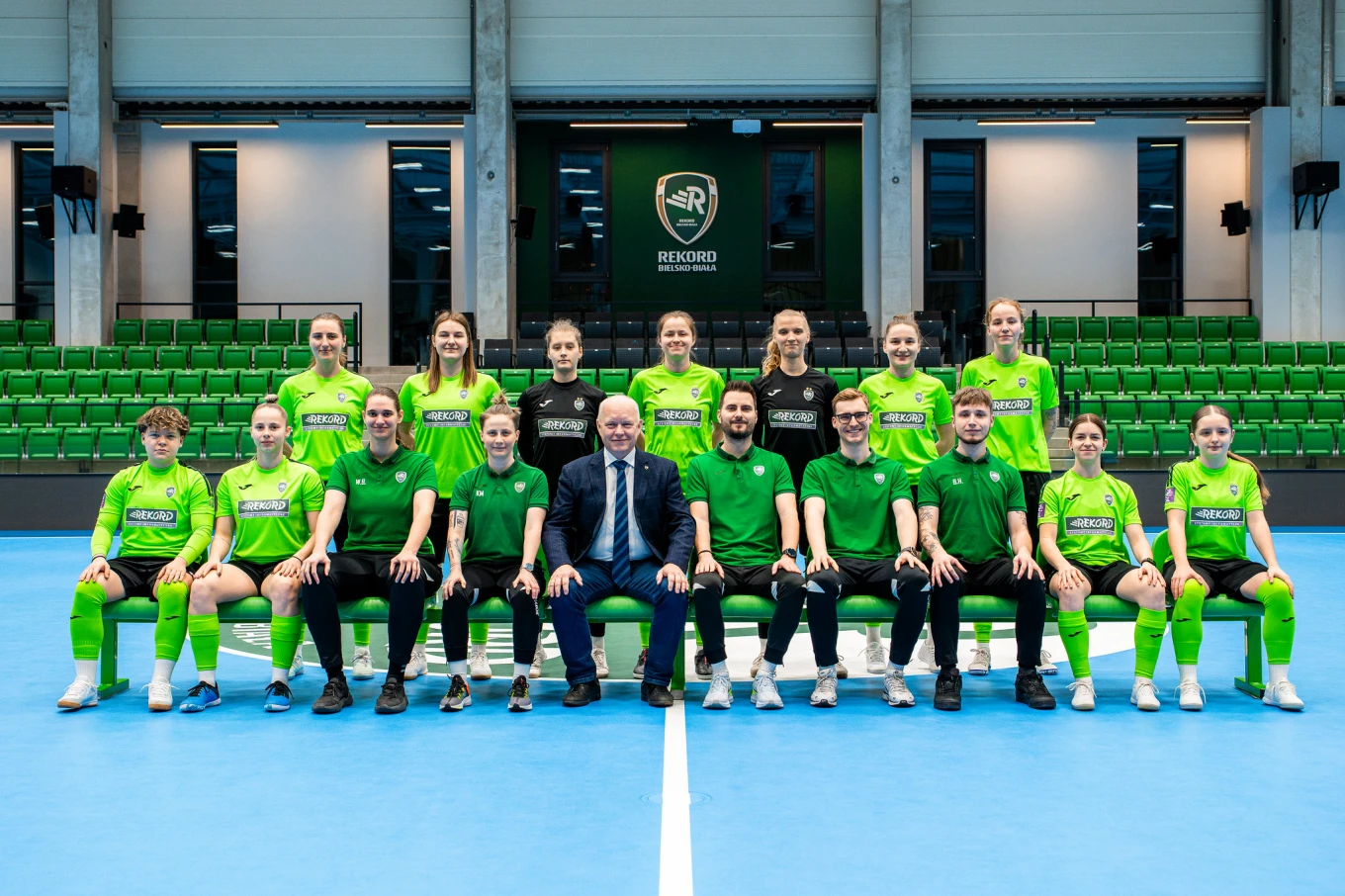 Dolny rząd od lewej: Maja Fal, Martyna Cygan, Wiktoria Berdys (kierowniczka drużyny), Katarzyna Moskała (asystentka trenera), Janusz Szymura (Prezes Klubu), Samuel Jania (I trener), Piotr Szymura (wiceprezes klubu), Jakub Piecha (II trener), Błażej Horecki (fizjoterapeuta), Maja Stopka, Oksana Shevchuk